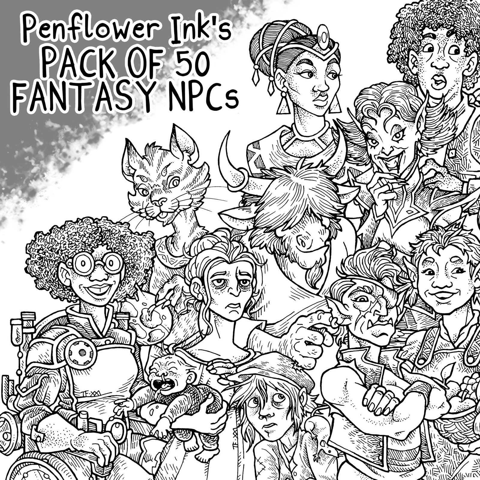 A pack of 50 Fantasy NPC Assets for you to use in your fantasy RPG of choice!