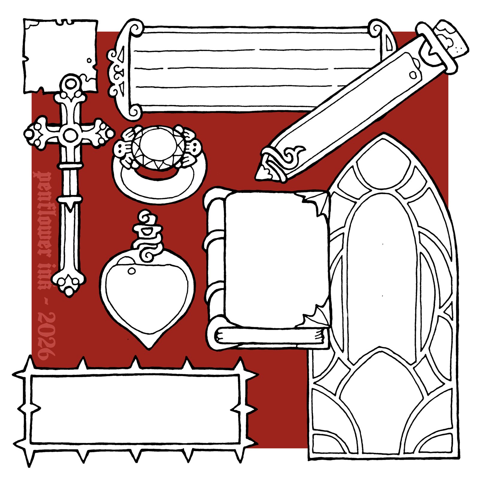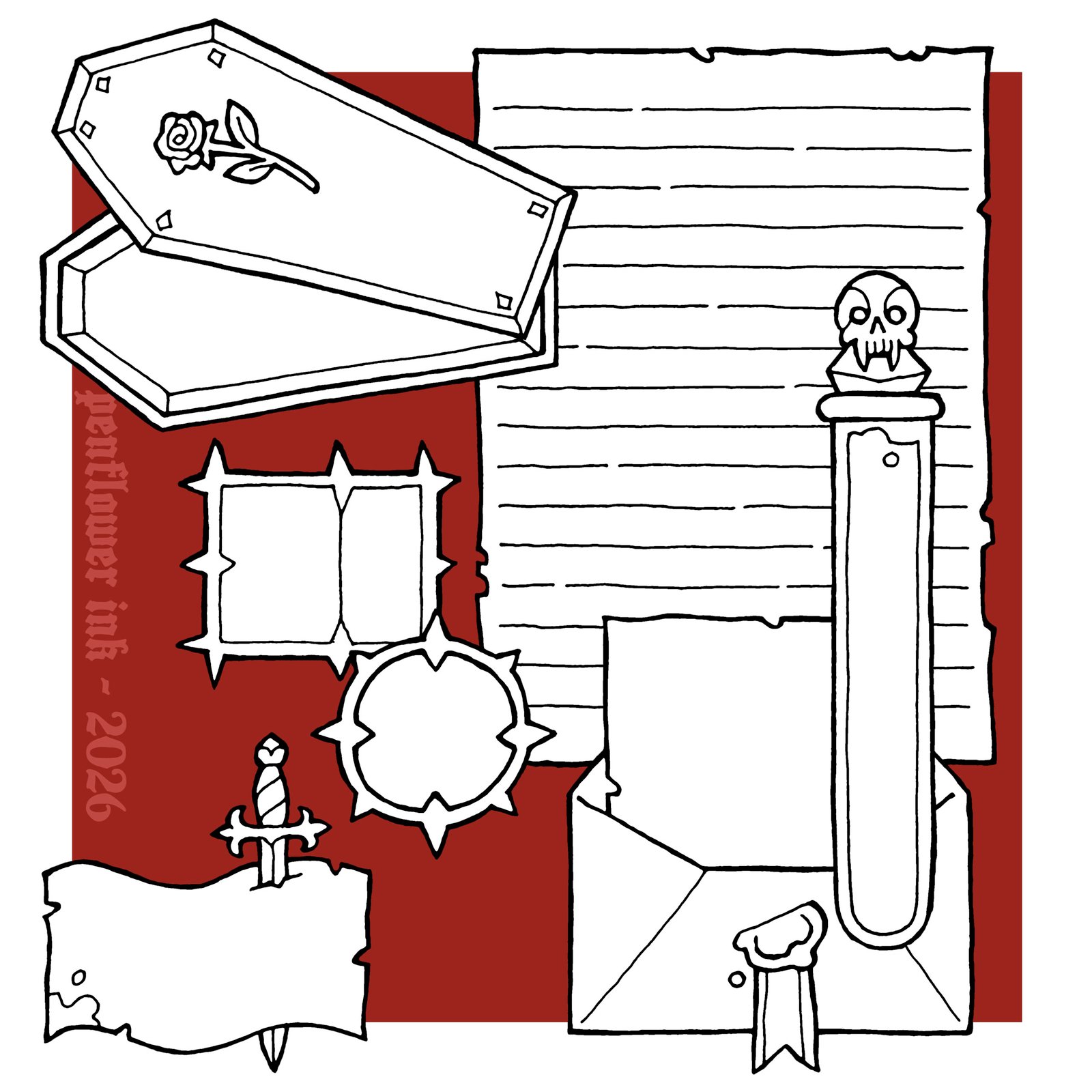 Character sheet assets by Penflower Ink, 2025, www.penflower-ink.com