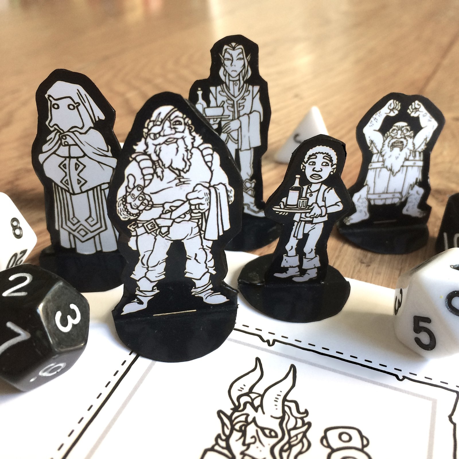 A set of 12 Tavern Patrons NPCs Minis and cards!